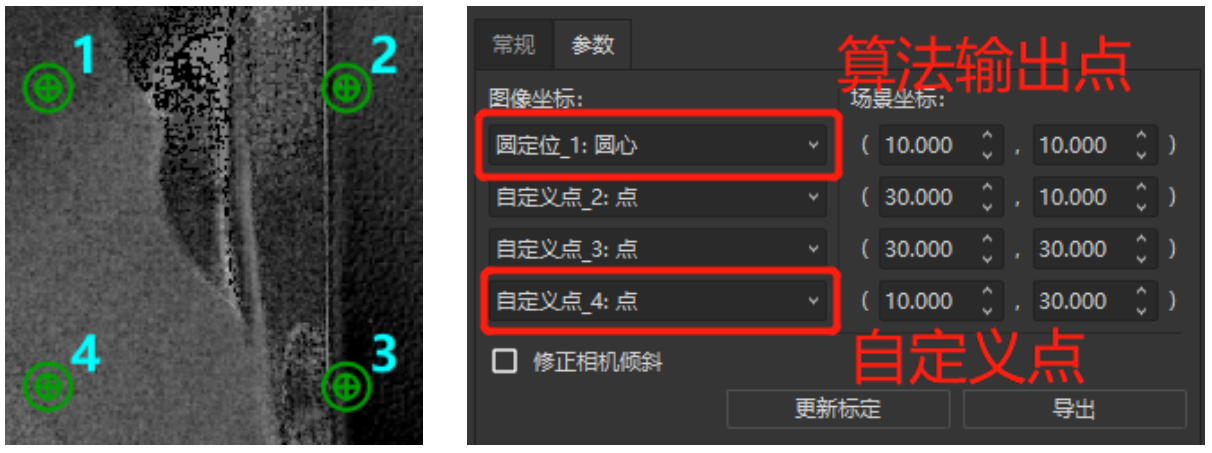 除此之外,相機(jī)鏡頭的畸變,以及現(xiàn)場相機(jī)安裝時的傾斜,都可以通過靈閃中的矯正算法進(jìn)行一鍵修正,降低了用戶的選型與調(diào)試要求。