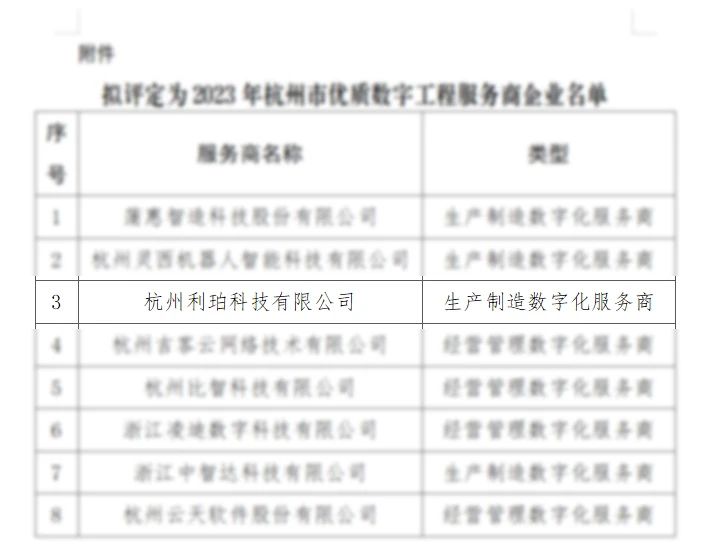 市經信局組織開展了2023年杭州市優(yōu)質數字工程服務商評定工作,杭州利珀科技有限公司獲評杭州市優(yōu)質數字工程服務商企業(yè)。