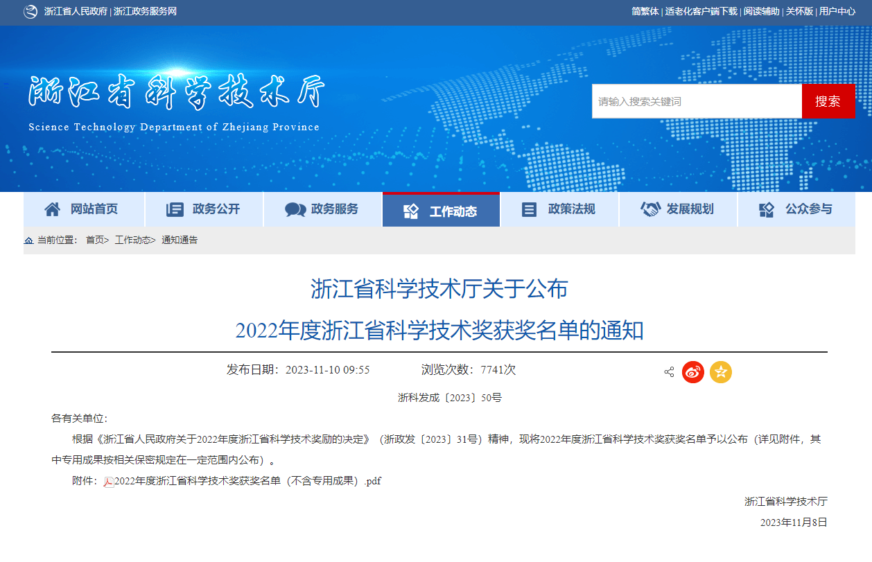 11月10日,省科技廳公布2022年度浙江省科學(xué)技術(shù)獎獲獎名單,杭州利珀科技有限公司榮獲2022年度浙江省科技進步獎一等獎