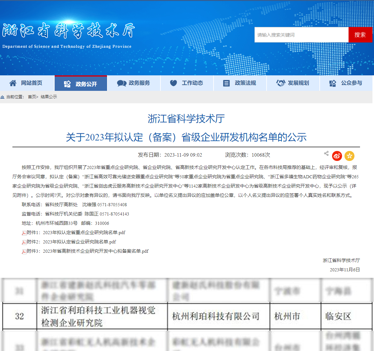 “科技賦能產(chǎn)業(yè),創(chuàng)新引領(lǐng)發(fā)展” 11月16日,浙江省科學(xué)技術(shù)廳公布了2023年新認定省級企業(yè)研究院公示名單。憑借著卓越的企業(yè)自主創(chuàng)新能力和競爭力,我司申請的“浙江省利珀科技工業(yè)機器視覺檢測企業(yè)研究院”成功獲批。